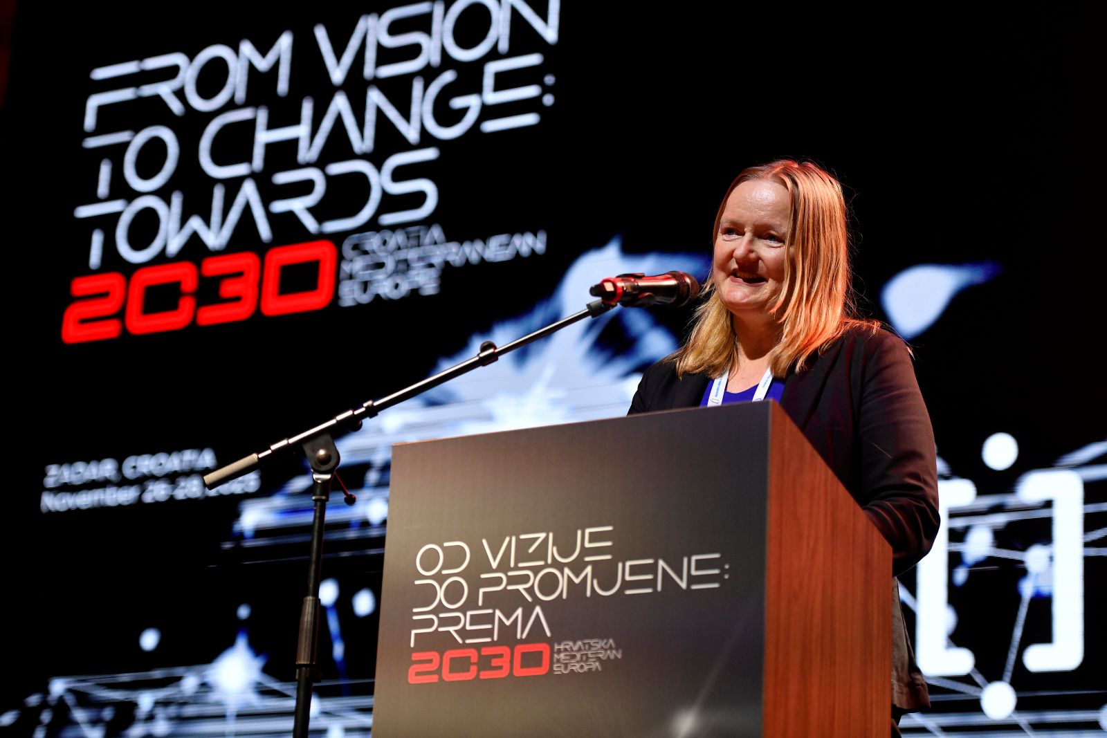 Svoja izlaganja održali su ugledni međunarodni stručnjaci: mr. sc. Marija Pejčinović Burić, bivša glavna tajnica Vijeća Europe, govorila je o geopolitičkom kontekstu održivog razvoja u Europi; dr. Colin Haberton, osnivač Relatomics Foundation iz Južnoafričke Republike, usmjerio je raspravu na pokretanje pozitivnih društvenih i okolišnih promjena; Adriano Bisello iz Eurac Research-a iz Bolzana govorio je o klimatski otpornim zajednicama i pametnim gradovima; prof. Stephanie Fischer s American University-ja predstavila je strategije društveno odgovornog poslovanja.