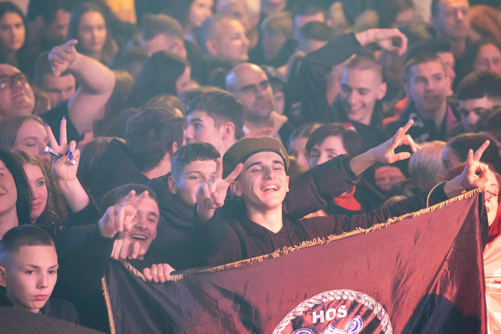 Hrvatski pjevač dočekan je bengalkama, a hrvatske zastave ponnosno su se vijorile u publici, a publika je pjevala uglas s Thompsonom unatoč kiši. U publici su s mogli vidjeti transparenti s natpisima Otočac, Gospić, Varaždin, Šibenik, Mostar, Posušje…