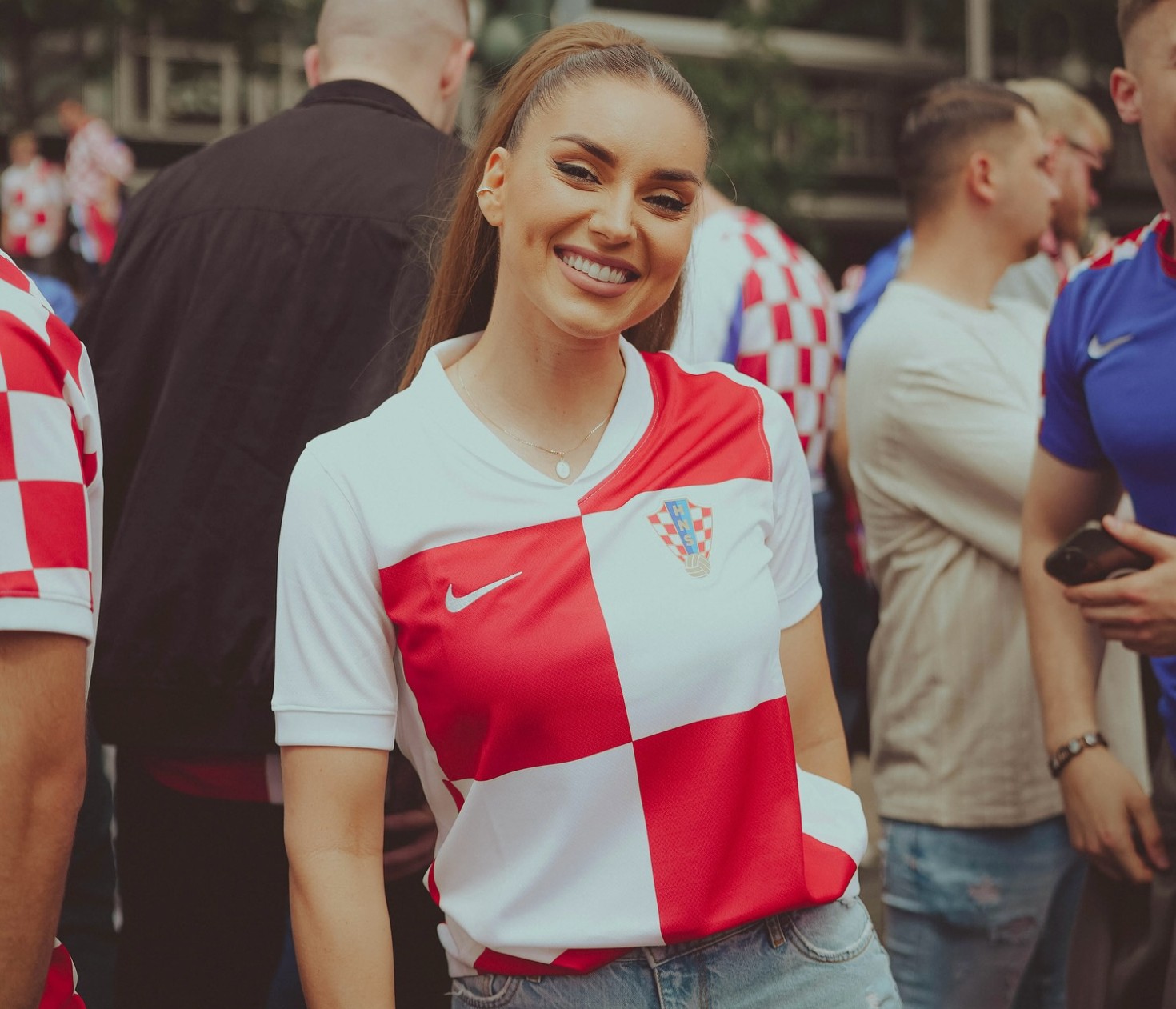 Pjevačica Antonija Čerkez uoči nogometne utakmice Hrvatske i Albanije pozirala je u hrvatskom dresu i fotografirala se s obožavateljima.