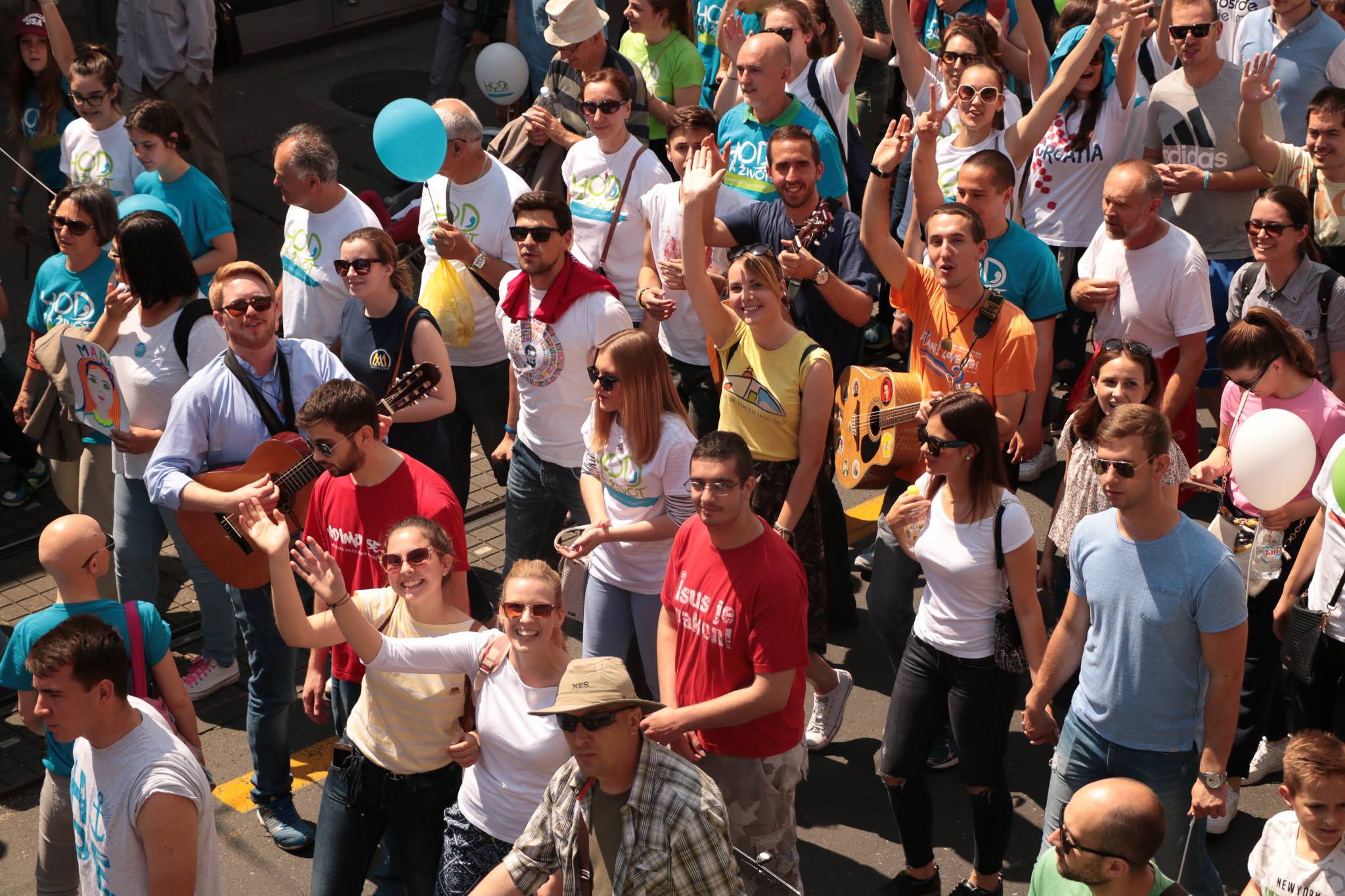 U manifestaciji Hod za život danas se u Zagrebu, po procjeni policije, okupilo oko 15 tisuća ljudi. Organizatori navode da ih je bilo oko 20 tisuća. veseli, razdragani s osmijehom na licima.