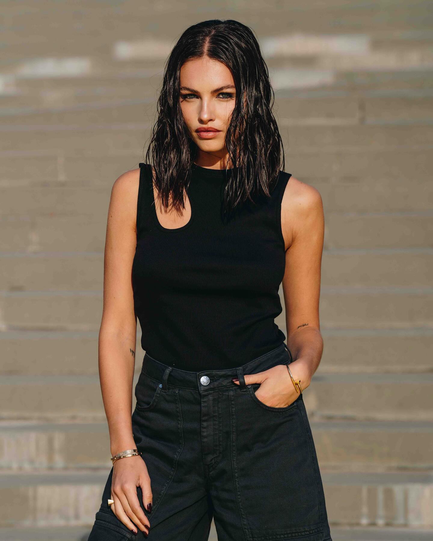 Danas 24-godišnja manekenka pokazala je besprijekoran izgled nedugo nakon što je javno demantirala glasine o estetskim operacijama. Ispod sakoa nosila je bijeli top, a svoju je figuru dodatno istaknula smeđim štiklama. Cjelokupni dojam zaokružila je valovitom frizurom i decentnom srebrnom ogrlicom.