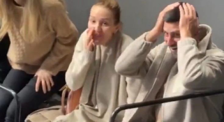 Novak i Jelena su bili šokirani, skočili su na noge, a Đoković se neko vrijeme držao za glavu u potpunom šoku od onoga što je upravo vidio.