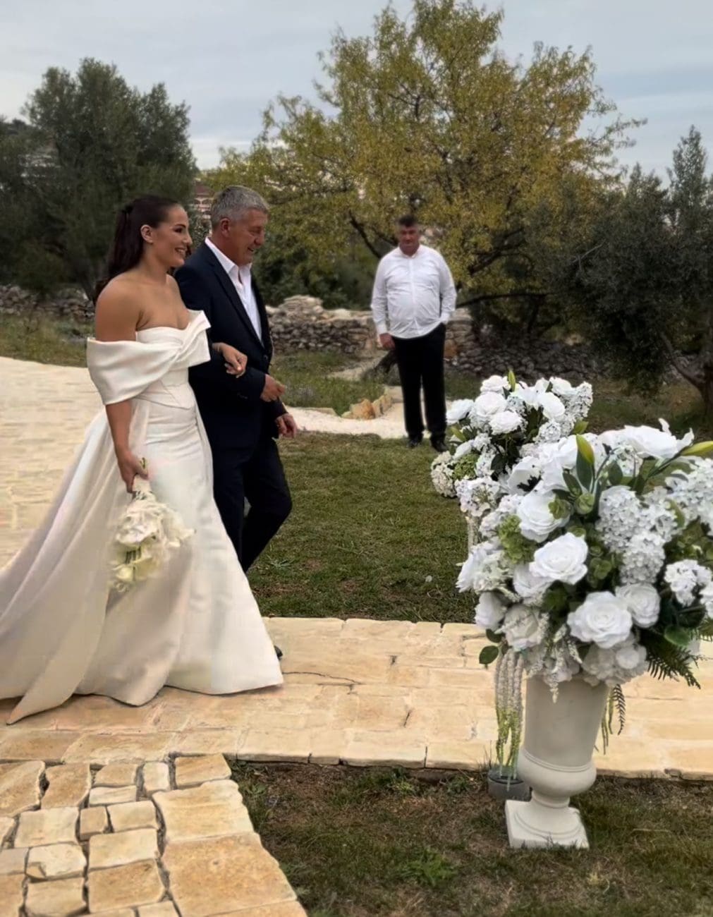 Dan nakon vjenčanja, Barbara je na svom Instagramu podijelila fotografije s vjenčanja. Barbara blista u elegantnoj bijeloj vjenčanici s otkrivenim ramenima, romantičnim spuštenim rukavima i suptilnim naborima u struku koji ističu njezinu figuru.