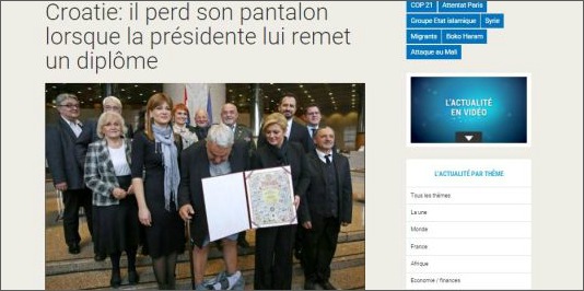 “Ovom čovjeku pale su hlače tijekom fotografiju s hrvatskom predsjednicom”, naslov je teksta u web izdanju prestižnog magazina Time koji piše da se nezgoda dogodila tijekom dodjele nagrada na Međunarodni dan ljudskih prava.