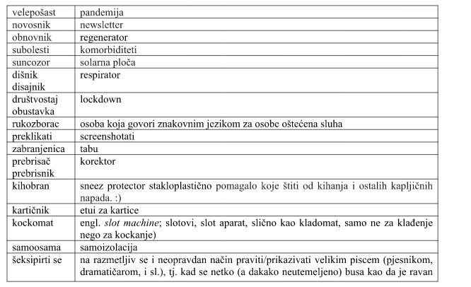 Za ostale novopredložene riječi do sada nismo imali nikakvu zamjenu.