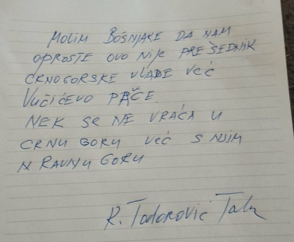 “Molim Bošnjake da nam oproste! Ovo nije predsjednik crnogorske Vlade nego Vučićevo pače. Neka se ne vraća u Crnu Goru, nego sa njim u Ravnu Goru”, stoji u poruci koju je objavio Sidran na svom Facebooku.