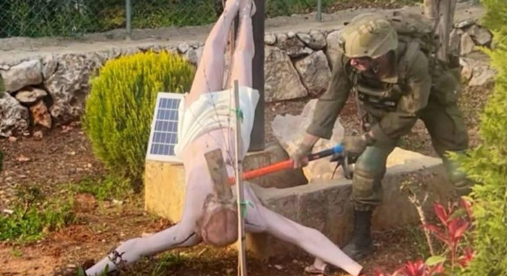 Fotografija na kojoj se vidi vojnik Izraelskih obrambenih snaga (IDF) u uniformi kako maljem razbija kip Isusa u južnom Libanonu brzo se jučer proširila društvenim mrežama i izazvala osude.