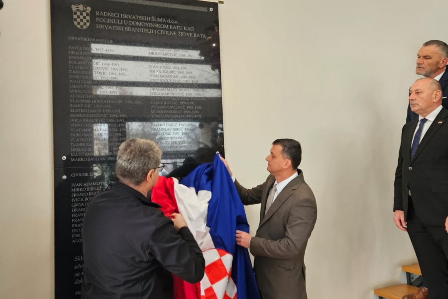 Hrvatske šume danas su svečano otkrile spomen ploču u čast djelatnicima Hrvatskih šuma koji su tijekom Domovinskog rata izgubili život kao branitelji ili kao civilne žrtve rata.