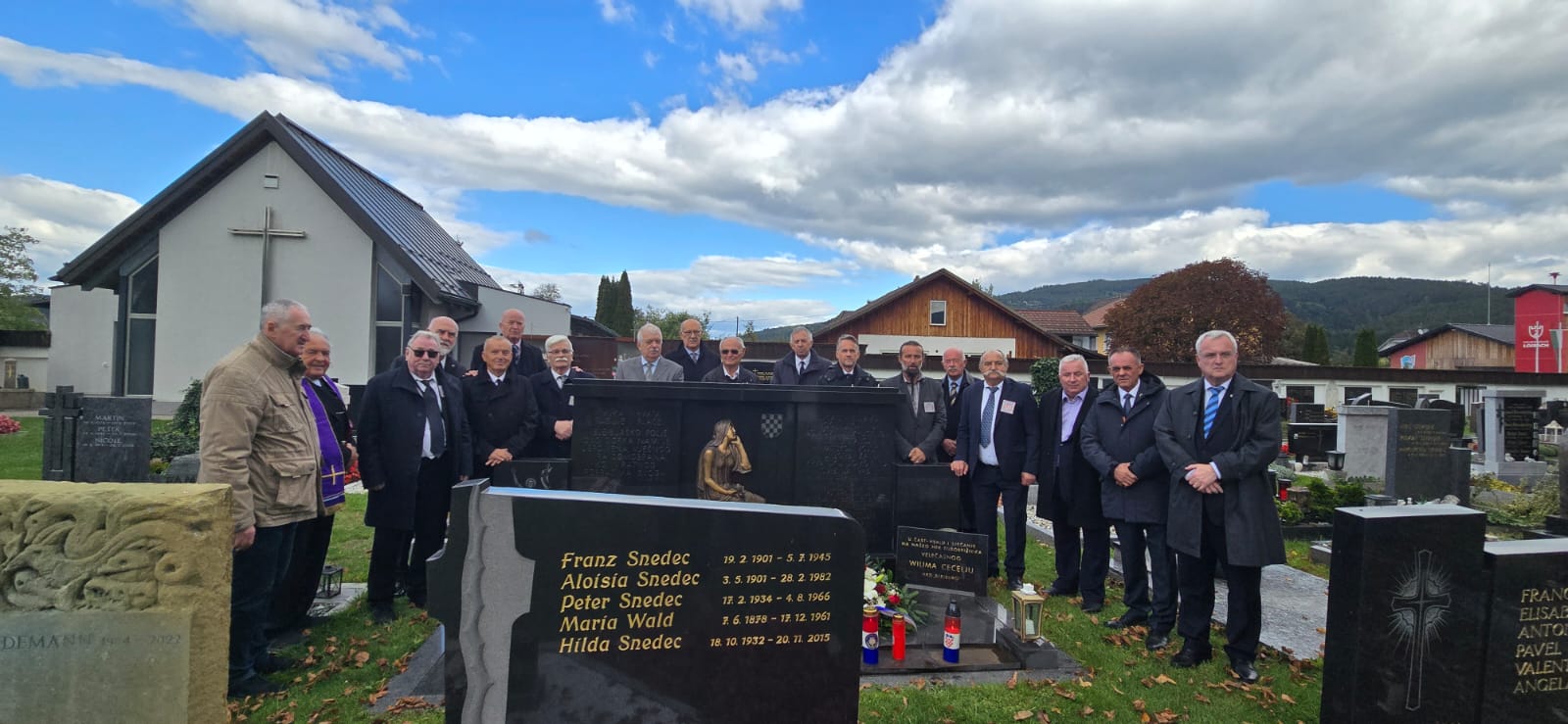Najprije je posjećeno groblje u Unterloibachu gdje je pored grobnice hrvatskih vojnika zajedničko izaslanstvo HGZ-a i PBV-a položilo cvijeće i zapalilo svijeće, a don Ante Kutleša, inače član vodstva PBV-a, uz asistenciju fra Pave Dominkovića, voditelja Hrvatske katoličke misije u Klagenfurtu, izmolio molitvu odrješenja.