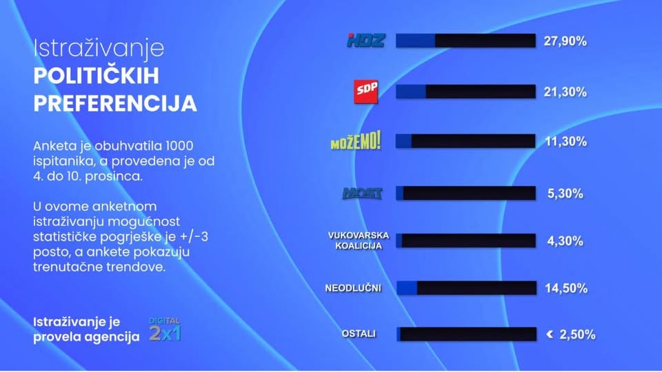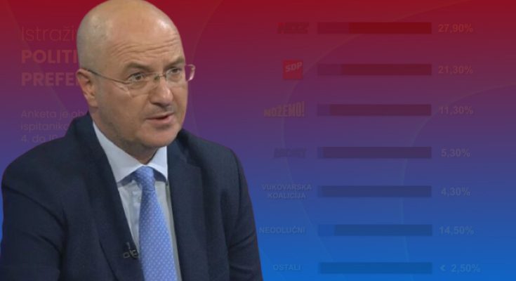 “Agencije za istraživanje javnog mnijenja i njihova logika. Ovdje vidimo kako zbroj rejtinga političkih stranaka i jedne koalicije uključujući neodlučne birače nije 100%. Kako je to moguće znaju samo u toj agenciji.