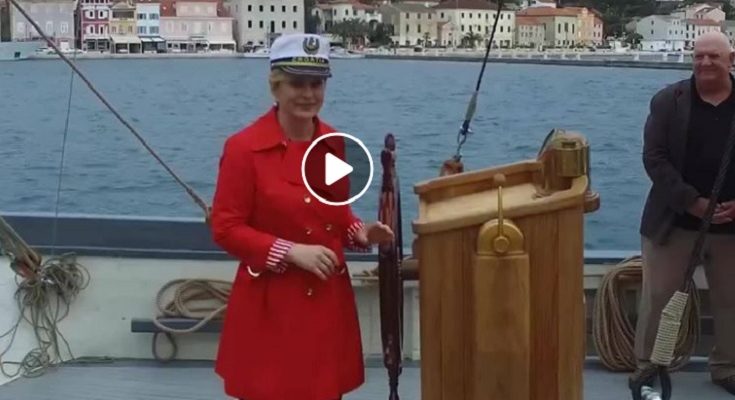 Najzanimljivije je bilo kada je nakratko stala za kormilo staroga jedrenjaka. S kapetanskom kapom na glavi.