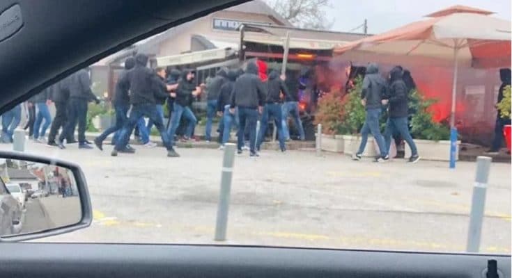 Svjedoci su potvrdili kako su letjeli stolovi i stolice iz obližnjih kafića, a u jednom trenutku netko je zapalio i baklju. Zasad nije poznato radi li se o navijačima.