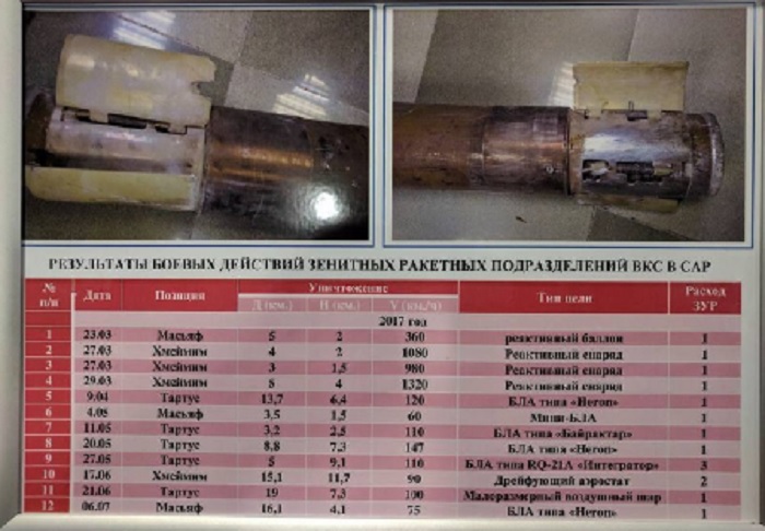 U tablici se vide točan datum kada je izvršeno obaranje, rajon mjesta gdje se dogodilo obaranje, osnovni parametri (daljina, visina i brzina) cilja koji je oboren, njegov tip, i u posljednjoj rubrici utrošak protuzračnih raketa sustava “Pancir-S1”, koje su upotrijebljene prilikom svakog konkretnog obaranja. Tablica je napravljena u vremenskom razdoblju od 23. ožujka do 6. srpnja 2017. Opširnije u nastavku teksta.