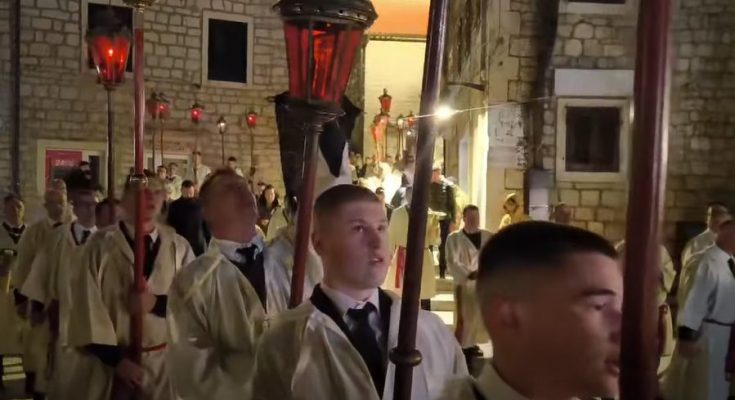 Olujna bura i uzburkano more nisu spriječili pobožni hvarski puk da i ove godine krene u procesiju „Za križen“. Ova jedinstvena višestoljetna tradicija duboko je ukorijenjena u duhovni život otočana već punih 500 godina.