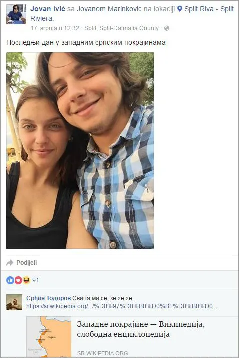 Jovan Ivić u hrvatske medije dopsio je 2016. godine nakon što jen obvjavio gotografiju sa splitske Rive i tekst: “Poslednji dan u zapadnim srpskim pokrajinama”, o čemu više možete čitati OVDJE
