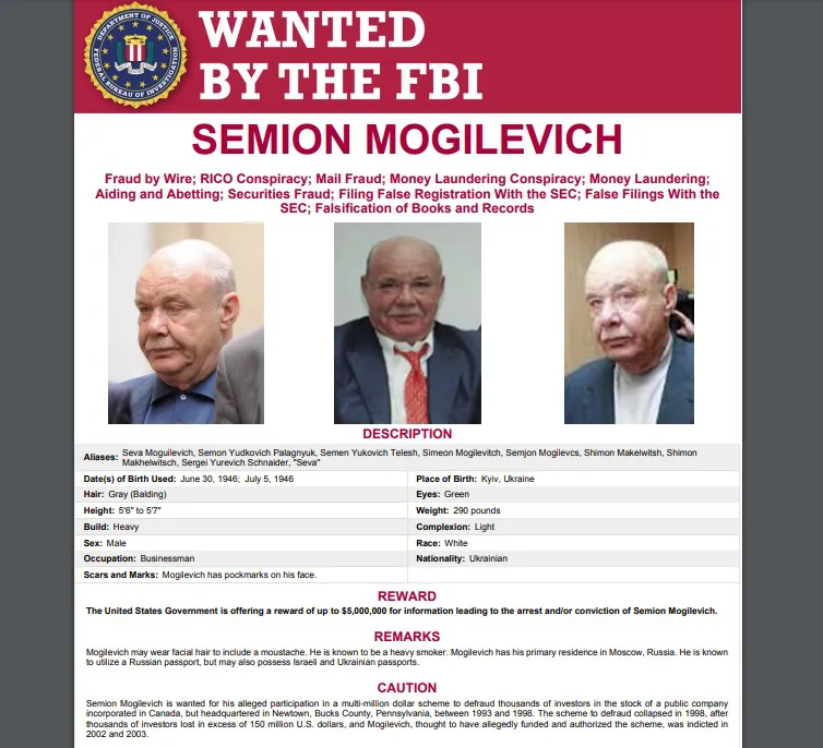 Semion Mogiljević, po zadnjoj objavi FBI-a, danas slobodno živi u Moskvi.