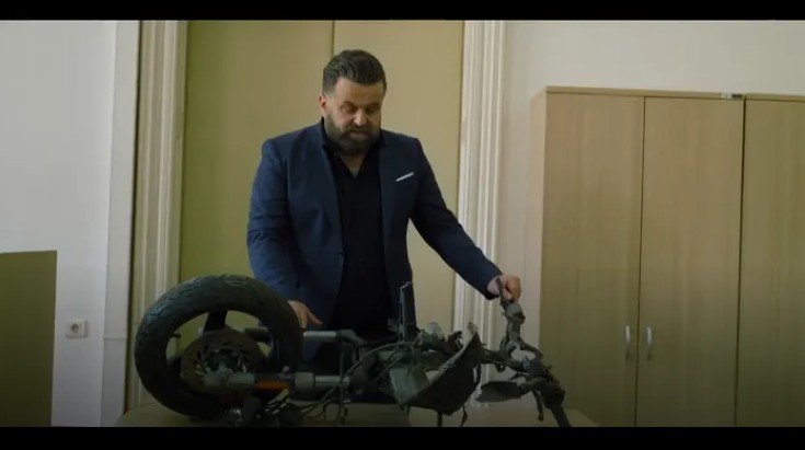“Ovo je skuter koji je korišten u atentatu na Ivu Pukanića i Niku Franjića, točnije, ovo su ostaci tog skutera. Unatoč tome što je ispod njega bila postavljena velika količina eksploziva, prednji dio je ostao skoro neoštećen. Ovo je ključni dokaz koji je doveo do počinitelja. Evo kako.