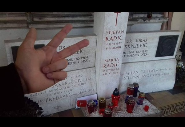 Na profilu se mogu naći fotografije snimljena nad grobom Stjepana Radića na kojem se pokazuju ‘tri prsta’ s jasnom porukom