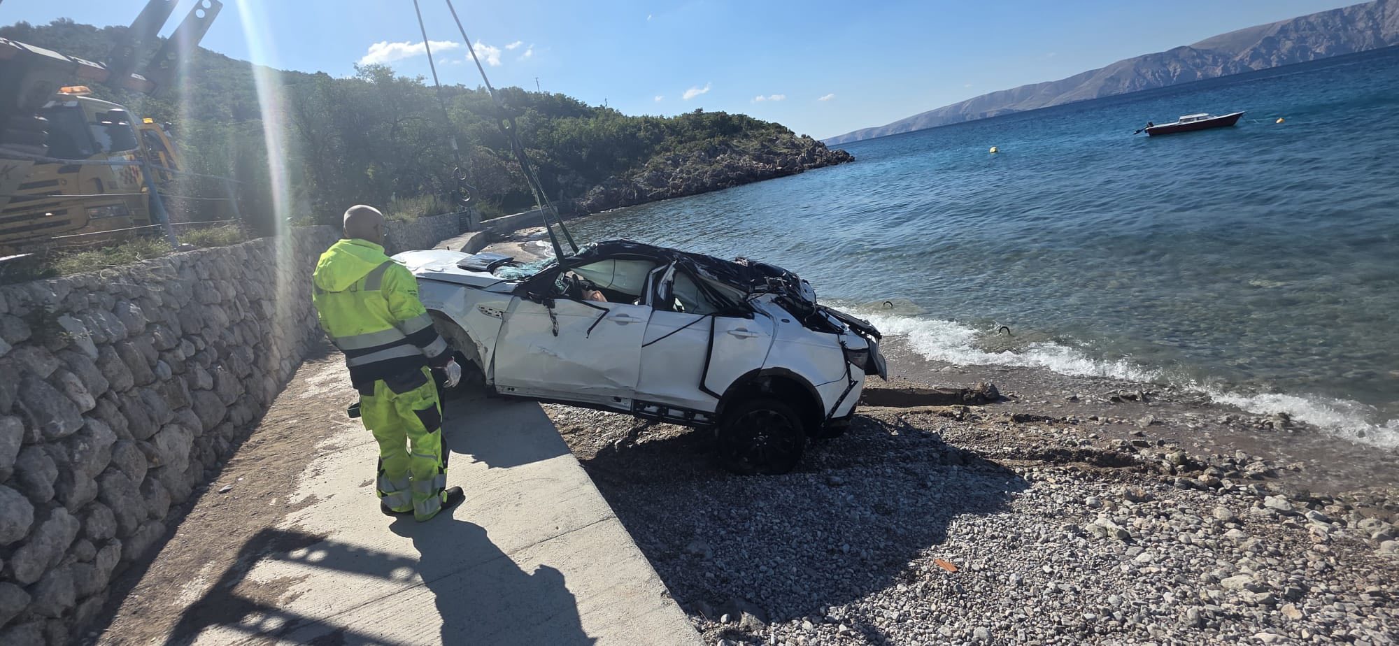 Pritom je udario u dva zaštitna kamena stupa, nastavio vožnju izvan kolnika te sletio u provaliju dubine 70 metara, a potom u more.
