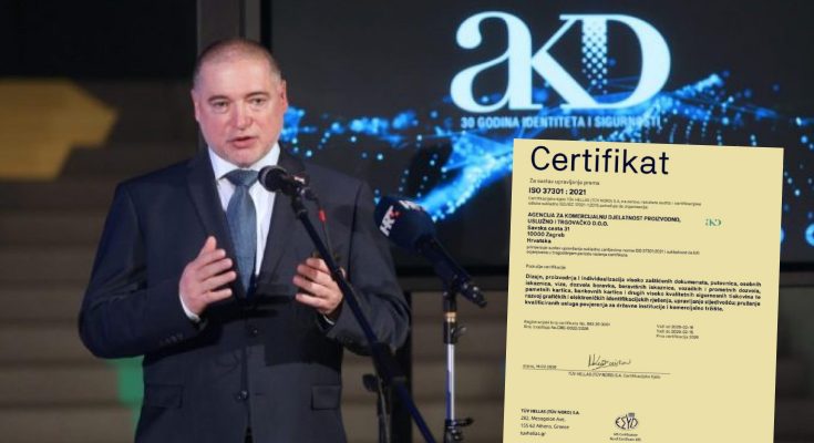 Agencija za komercijalnu djelatnost (AKD), poduzeće od posebnog interesa za Republiku Hrvatsku, uspješno je završilo certifikacijski audit prema međunarodnoj normi ISO 37301 – Compliance Management System (CMS – Sustav upravljanja usklađenošću) te time postalo prvo poduzeće u Republici Hrvatskoj koje je steklo certifikat prema toj normi.