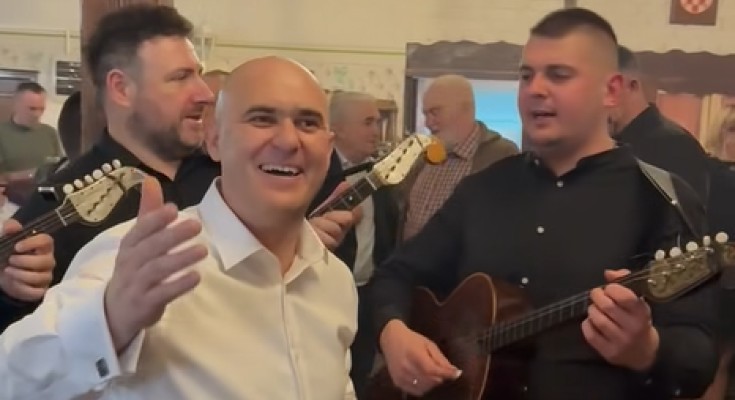 Na snimci rođendanske proslave 5. siječnja, vidi se kako Dabro s osmjehom na licu i čašom u ruci s tamburašima pjeva stihove pjesme “Tjeraju me, do tamnice puste”.