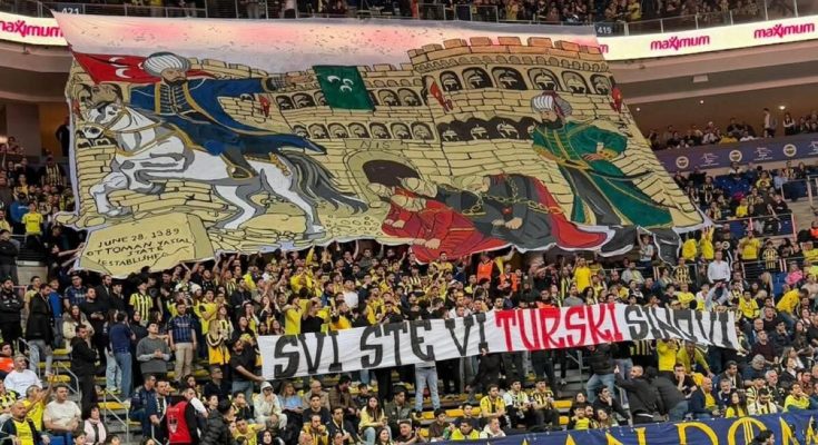Nakon što su navijači Partizana na utakmici u Beogradu napravili transparent sa slikom na kojoj “Miloš Obilić ubija Murata” i pjevali provokativne pjesme, navijači Fenerbahčea odlučili su odgovoriti.