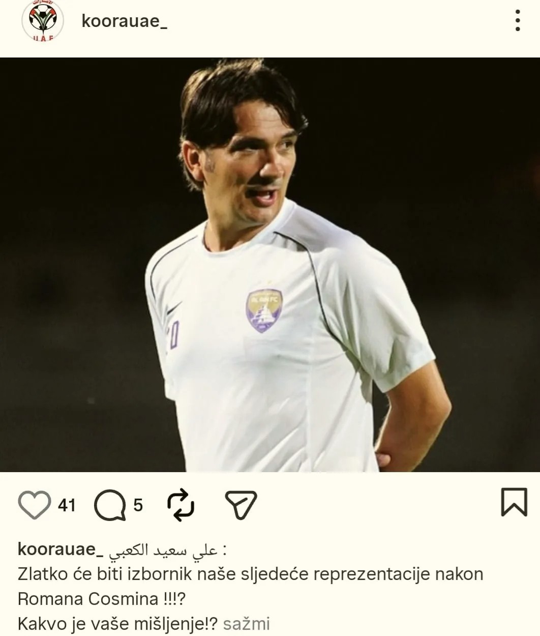 Više izvora, jako dobro upućenih u nogometna zbivanja na Bliskom Istoka, već neko vrijeme tvrdi da je Zlatko Dalić prvi i glavni izbor Emiraćana za novog izbornika, za nasljednika Rumunja Cosmina Olaroiua. On je klupu preuzeo prošlog ljeta, ali nije baš napravio velike stvari, u 13 utakmica upisao je četiri pobjede, pet remija i četiri poraza.