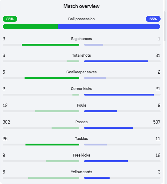 Osim po golovima i žutim kartonima ( Istra 6, Dinamo 3) Zagrepčani su po statistici prednjačili u svemu. Imali su posjed 65 posto, 31 udarac prema golu Istre ali napadači nisu imali svoj dan. U promašajima su prednjačili Dion Drena Beljo i Arber Hoxha.