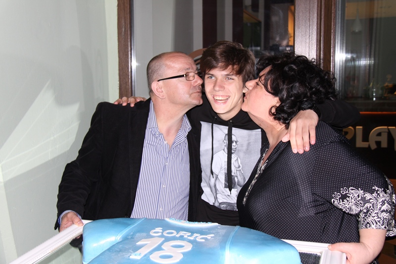 Slavilo se sinoć u novozagrebačkom kvartu Središće. Dinamov dragulj Ante Čorić Gaučo slavio je 18. rođendan. Kad se nakon popodnevnog treninga pojavio pred obiteljskim kafićom Play, upalile su se baklje, a tamburaši su zasvirali Dinamovu himnu.
