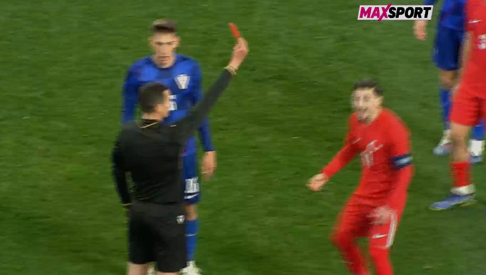 Turska je u 74. minuti zaradila još dva crvena kartona. Pocrvenio je napadač Kilicsoy nakon što je udario Dominika Prpića, da bi u nastavku crveni karton dobio i Cihan Canak zbog prigovora. Turska je utakmicu završila s osam igrača.