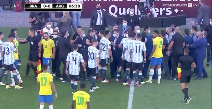 Utakmica između Brazila i Argentine koja se igra u Sao Paolu prekinuta je prije nekoliko minuta. Zdravstveni radnici ušli na teren, Argentinci otišli u svlačionicu.