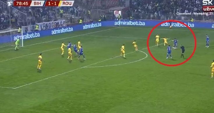 Rumunjska je do vodstva stigla u 17. minuti kada je Valentin Mihăilă pobjegao Arjanu Maliću na lijevom krilu i dodao loptu Birligei, koji iz blizine lagano prebacuje Nikolu Vasilja i donosi gostima prednost. BiH je gubila na poluvremenu, no samo četiri minute nakon početka drugog dijela Edin Džeko se najbolje snašao u petercu gostiju te svojim 72. golom za reprezentaciju izjednačio rezultat.