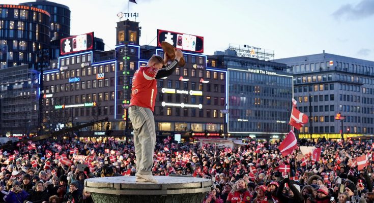 Danski rukometni reprezentativci proslavili su u ponedjeljak u Kopenhagenu naslov europskih prvaka, osvojen dan ranije. Nakon slavlja u Herningu protiv Njemačke, novi prvaci Europe dočekani su pred tisućama navijača na trgu ispred Gradske vijećnice, gdje su pozdravljeni s balkona.