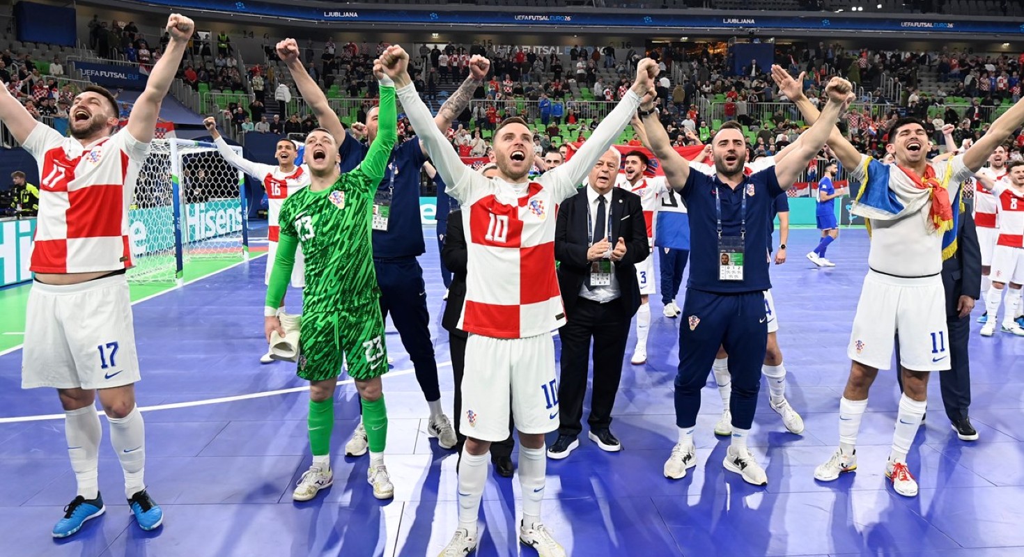 Ljubljana, 07.02.2026 – Utakmica za treæe mjesto Europskog prvenstva u futsalu Hrvatska – Francuska. foto HINA/ STA/ Bor SLANA/ ik