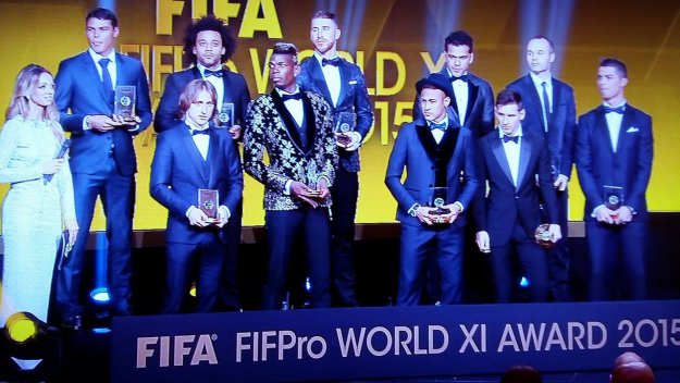 Uz Modrića, u idealnoj postavi nalaze se još trojica igrača Reala, Sergio Ramos, Marcelo i Cristiano Ronaldo, te četiri igrača Barcelone, Dani Alves, Andres Iniesta, Lionel Messi i Neymar. Momčad godine zaokružuju vratar Bayerna Manuel Neuer, branič Paris SG-a Thiago Silva i veznjak Juventusa Paul Pogba.