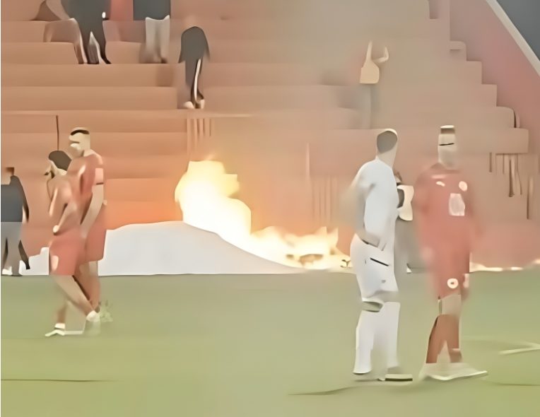 Prava drama, međutim, dogodila se u 14. minuti, kada su domaći navijači zapalili trake prethodno bačene na teren. Plamen se brzo proširio ispred njihove tribine, a prizor su u nevjerici promatrali igrači obiju momčadi i trener Igor Štimac.