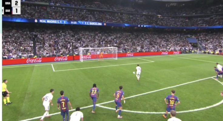 Barca je uspjela izjednačiti u 38. minuti. Arda Guler je izgubio loptu u opasnoj zoni, Pedri je potom uposlio Rashforda, a ovaj sjajno asistirao do Lopeza koji je zabio za 1-1. No, radost gostiju nije predugo trajala. U 43. minuti je Real stigao do nove prednosti. Vinicius je ubacio s lijeve strane, Eder Militao glavom vratio u sredinu do Bellinghama koji je lagano zabio za 2-1.