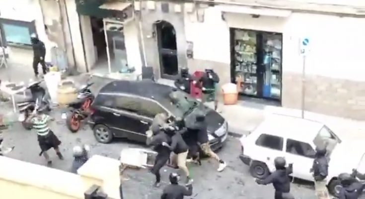 🔵 | Violenti scontri tra i tifosi del #Napoli e dello Sporting Lisbona prima della gara di Champions League pic.twitter.com/tsaG54yX1c