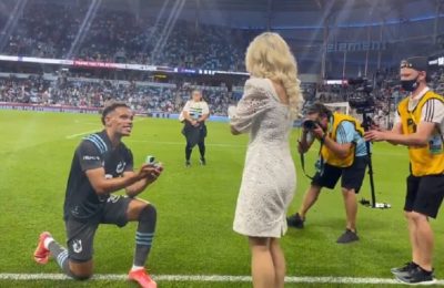 Nakon posljednjeg sučeva zvižduka Hassani Dotson pozvao je svoju djevojku Petru Vučković na teren, a već koji trenutak kasnije igrač Minnesote United kleknuo je...