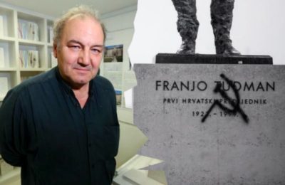 Na postolju spomenika, preko natpisa “Franjo Tuđman, prvi hrvatski predsjednik 1922. – 1999.”, Na pravoslavni Badnjak 6. siječnja vandali su nacrtali su srp i...
