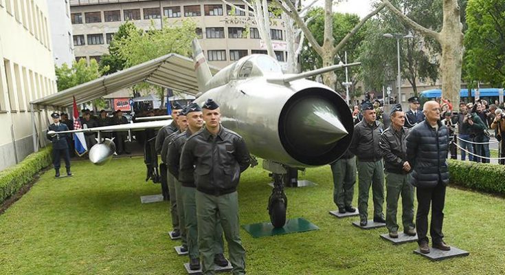 MiG 21 Rudija Perišina izložen ispred zgrade Ministarstva obrane/Foto:MORH