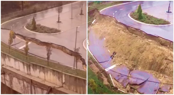 Ljudi na društvenim mrežama urušavanje ceste uspoređuju s padom nadstrešnice u Novom Sadu koja je ubila 16 ljudi.