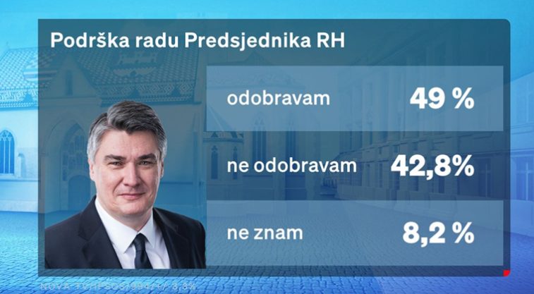 Građani najbolje ocjenjuju rad predsjednika Republike. Poteze Zorana Milanovića odobrava gotovo svaki drugi ispitanik. Njegov rad ne podržava gotovo 43 posto, dok se 8 posto nije izjasnilo.