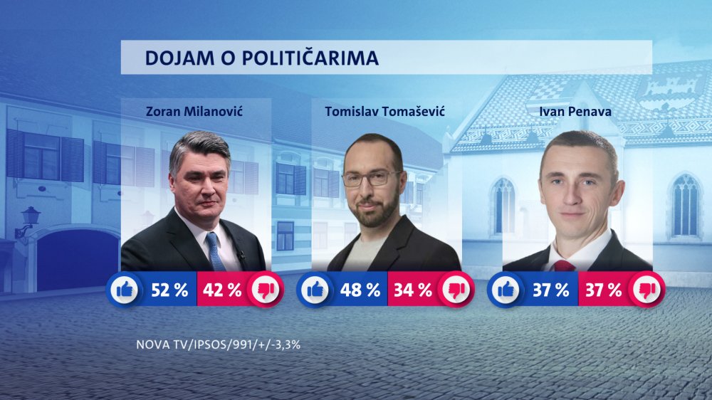 Zoran Milanović i dalje je najpopularniji političar. O njemu pozitivan dojam ima 52 posto birača, a negativan 42 posto. Malo je popularniji među starijim biračima iznad 60 godina u Zagrebu i okolici, a recimo može računati i na 37 posto birača HDZ-a koji o njemu imaju pozitivan stav.