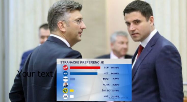 HDZ podupire 24,91% ispitanika, a zatim slijedi velika udaljenost do treće stranke.