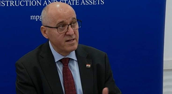Potpredsjednik Vlade i ministar prostornoga uređenja, graditeljstva i državne imovine, Branko Bačić daje izjavu za medije na temu Vjesnika u Ministarstvu.