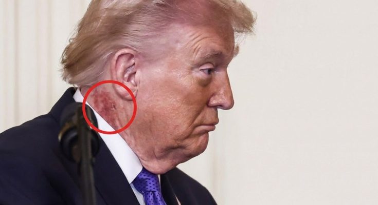 Doista, fotografije Saula Loeba iz agencije Agence France-Presse prikazuju nešto što izgleda kao istaknuta crvenkasta rana ili krasta ispod njegova desnog uha, zaklonjena bijelim ovratnikom košulje.