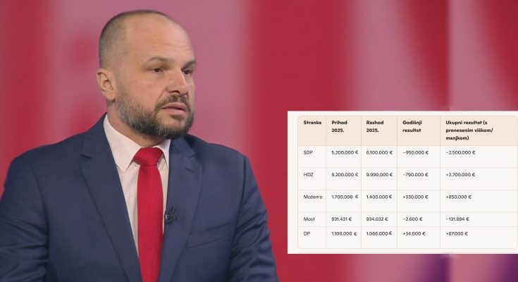 SDP mora pokriti manjak od 2,5 milijuna eura. Prihodi te stranke prošle su godine iznosili oko 5,2 milijuna eura, a rashodi oko 6,1 milijun eura, manjak je oko 950.000 eura. Kad se tome doda i onaj preneseni, SDP u sljedećem razdoblju mora naći načina kako pokriti ‘minus’ od oko 2 5 milijuna eura.