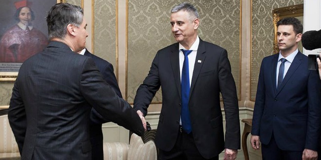 Ulaskom u prostorije Banskih dvora Milanović i Orešković kratko su popričali na engleskom.