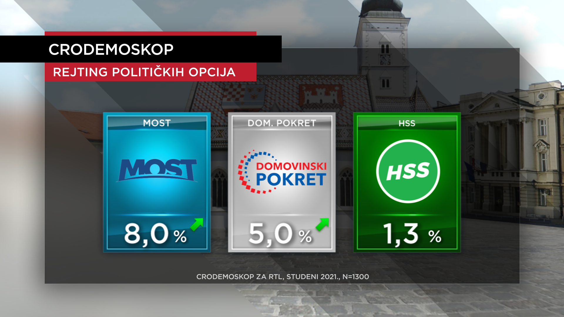 Raste i Domovinski pokret s novim predsjednikom no samo do 5 posto (u listopadu bili na 3,7 posto).